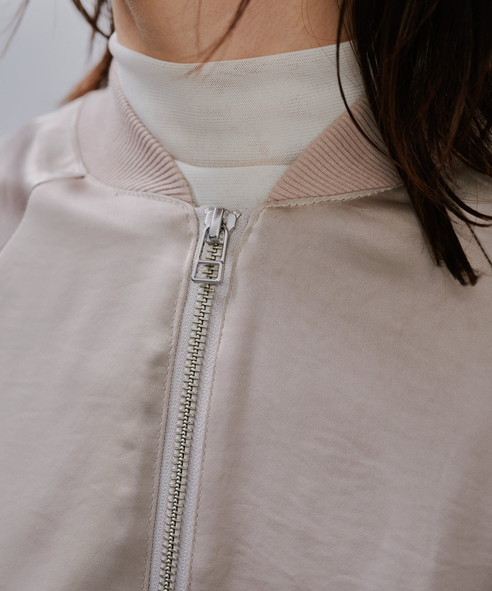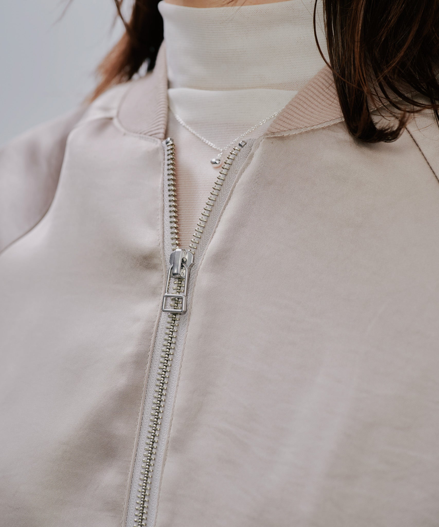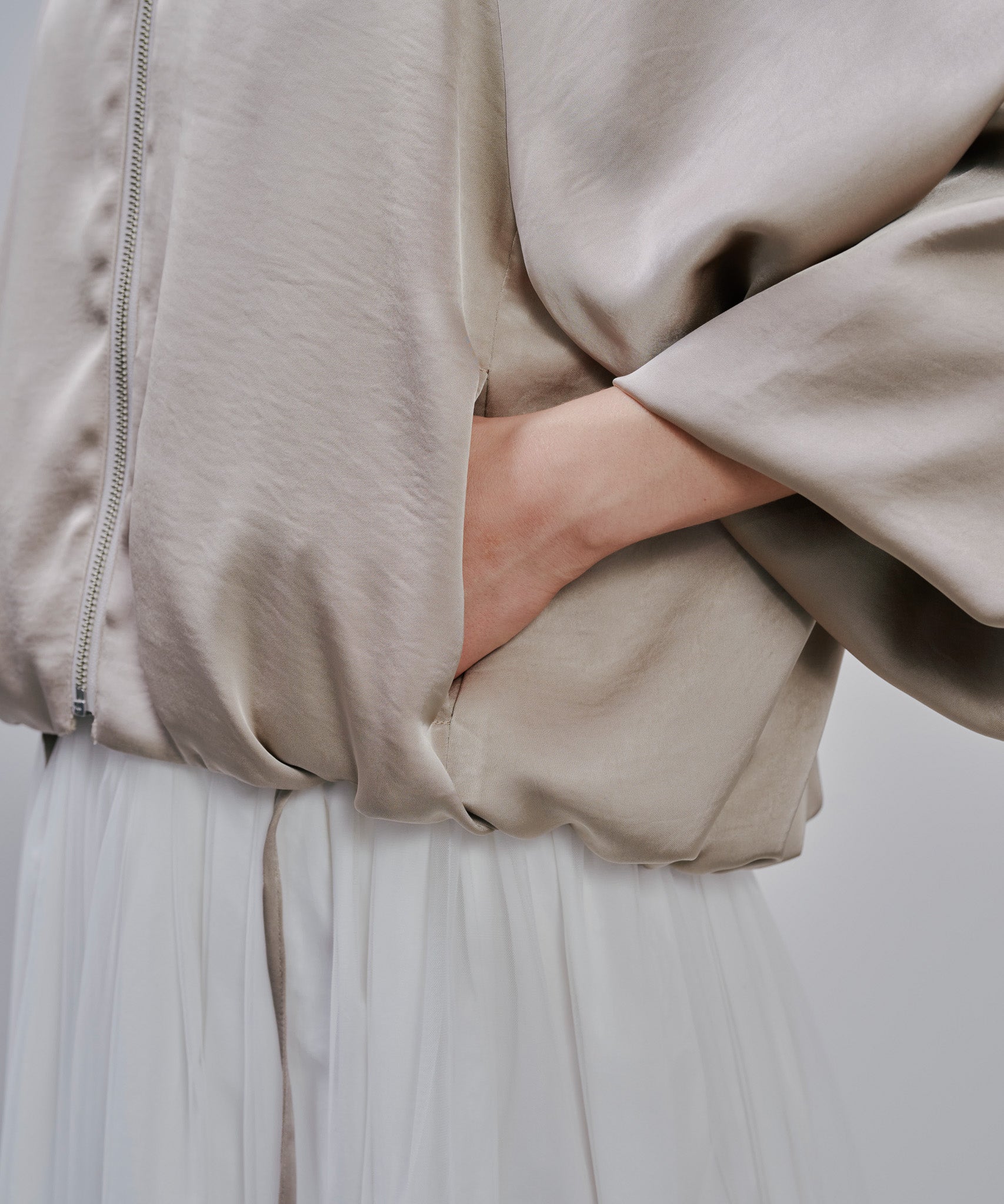 光沢感ある100%ポリエステルのサテン生地を使用。落ち感の出るしなやかな生地が魅力の一着です。