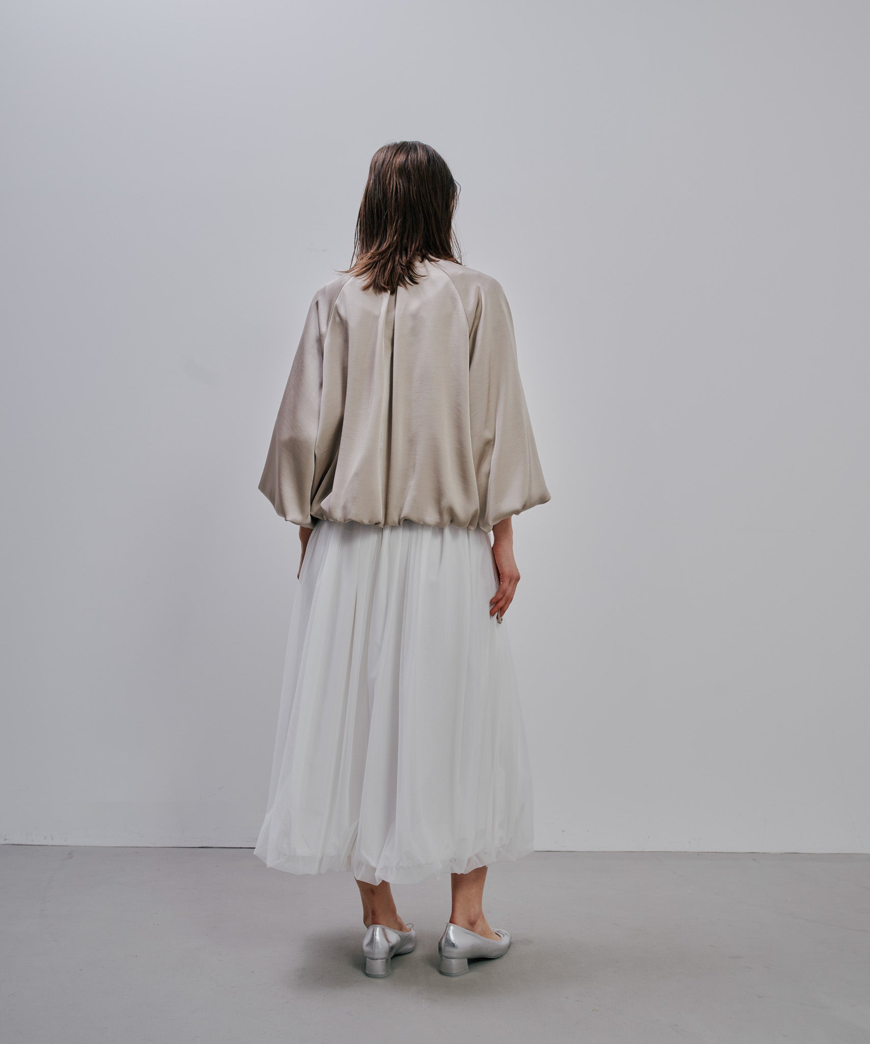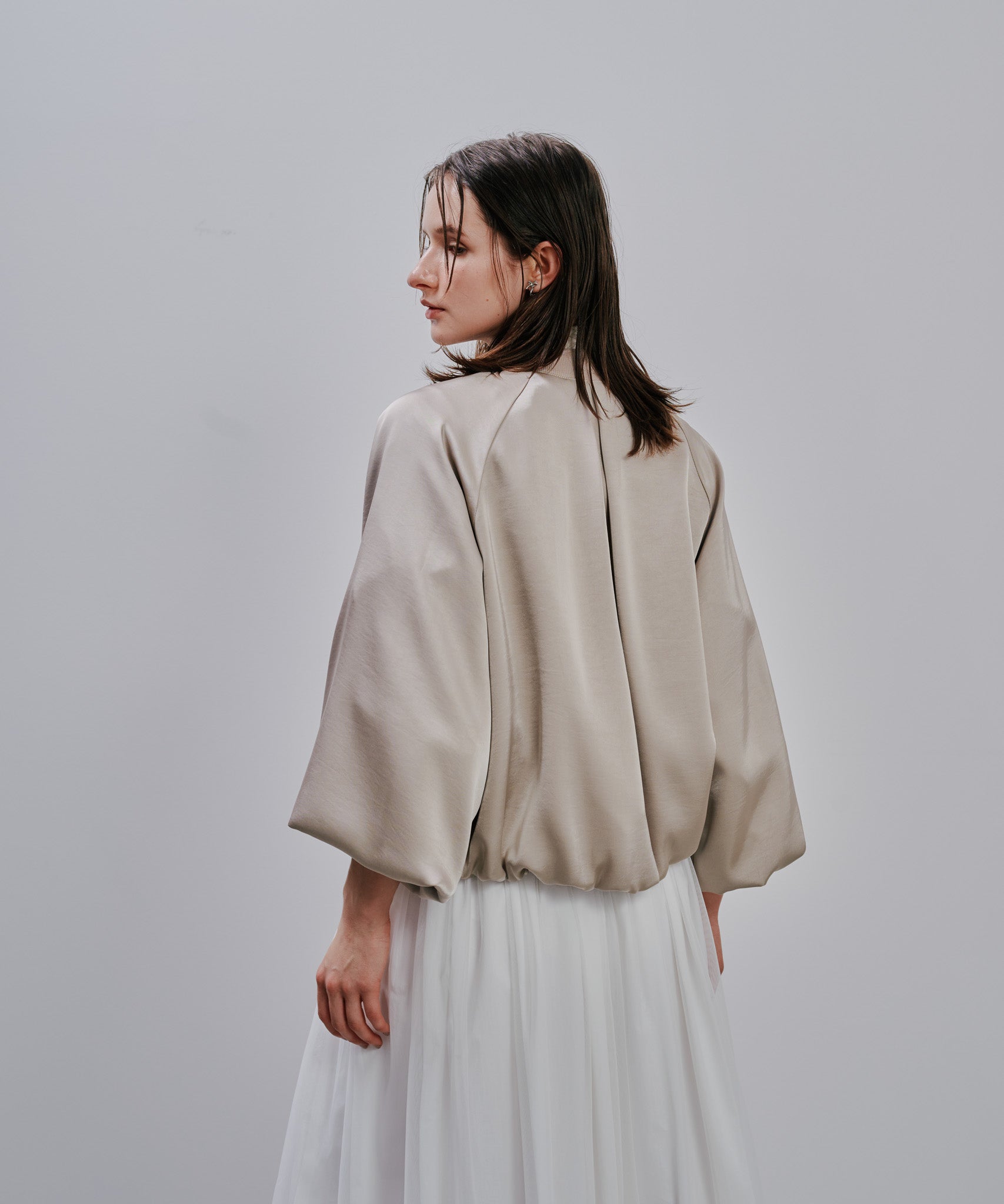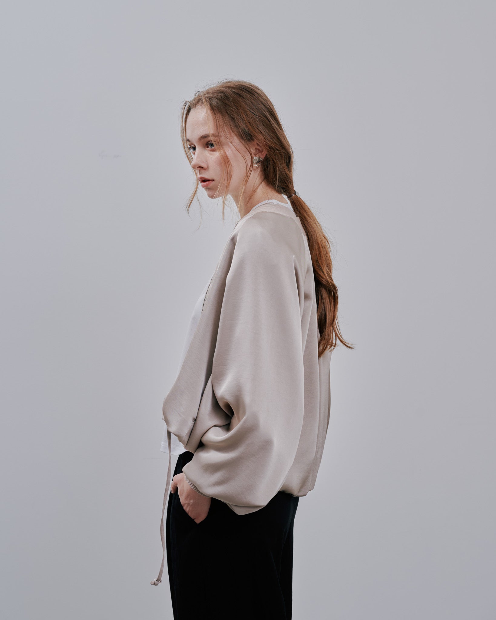 光沢感ある100%ポリエステルのサテン生地を使用。落ち感の出るしなやかな生地が魅力の一着です。
