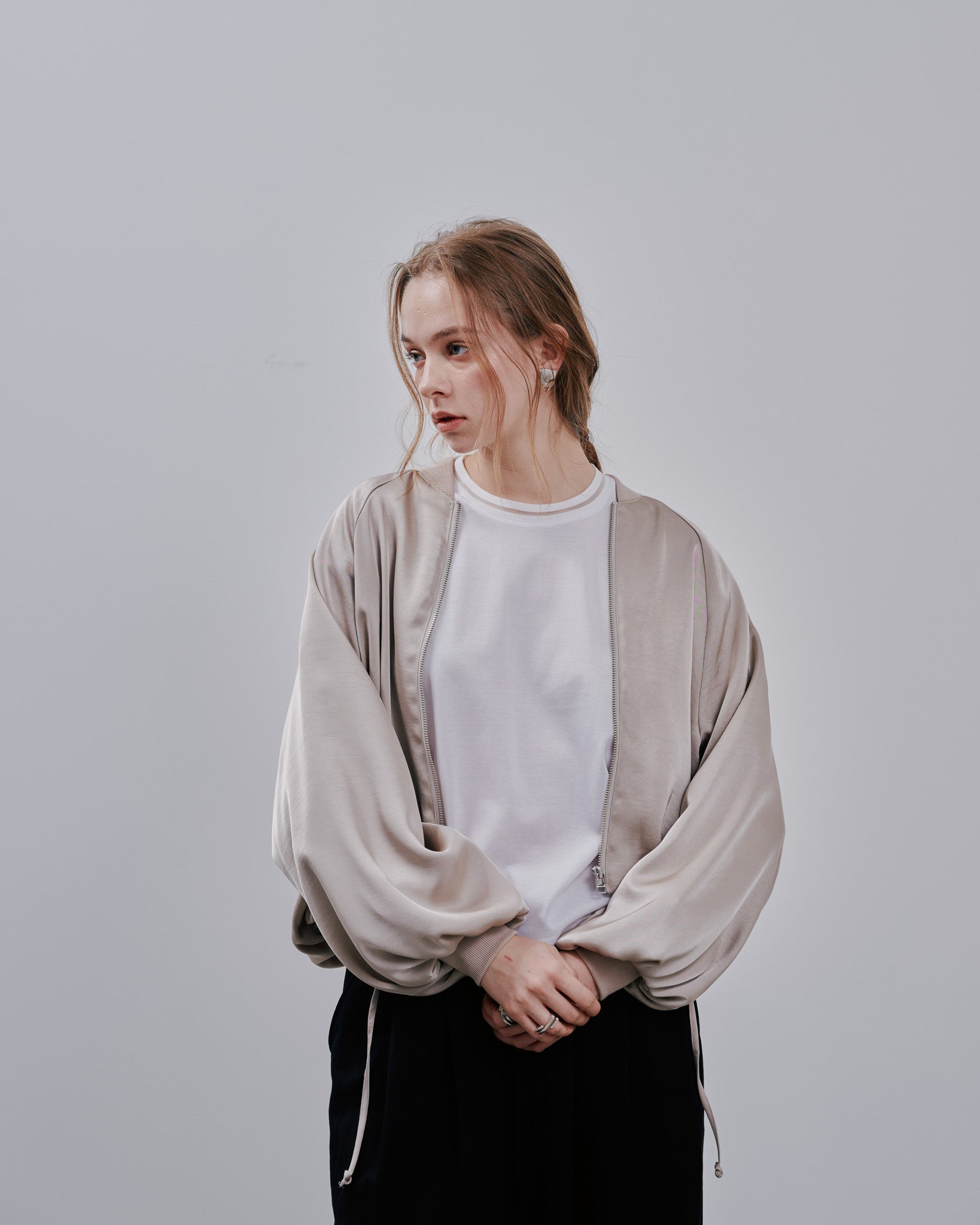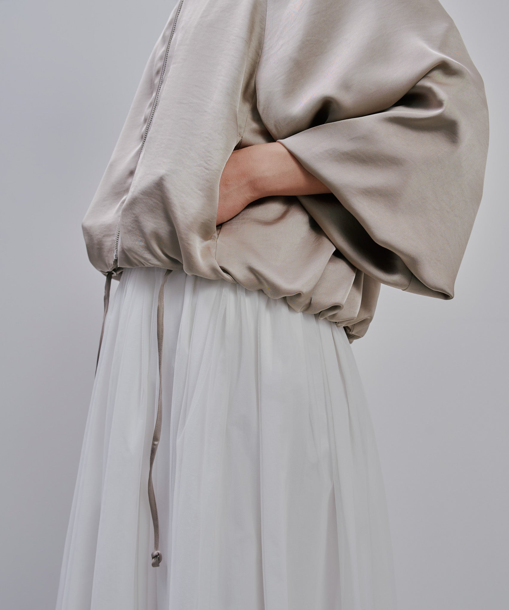 フロントはダブルジップの仕様になるため、インナーを見せるレイヤードスタイルにもオススメです。ウエストと裾部分には、ドローコードを搭載しシルエットの調整が可能。袖口のボリューム感が現代的なニュアンスを添えます。