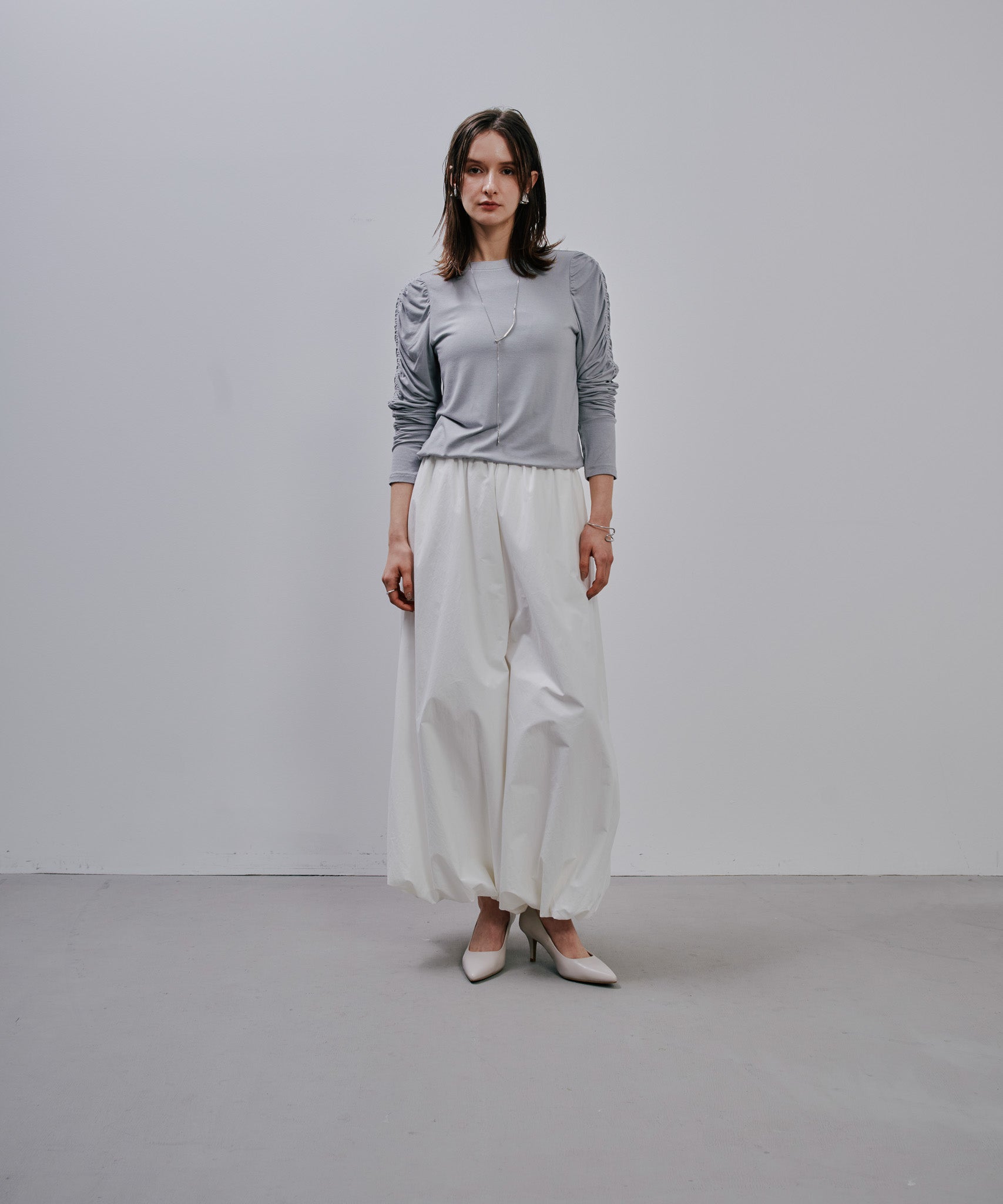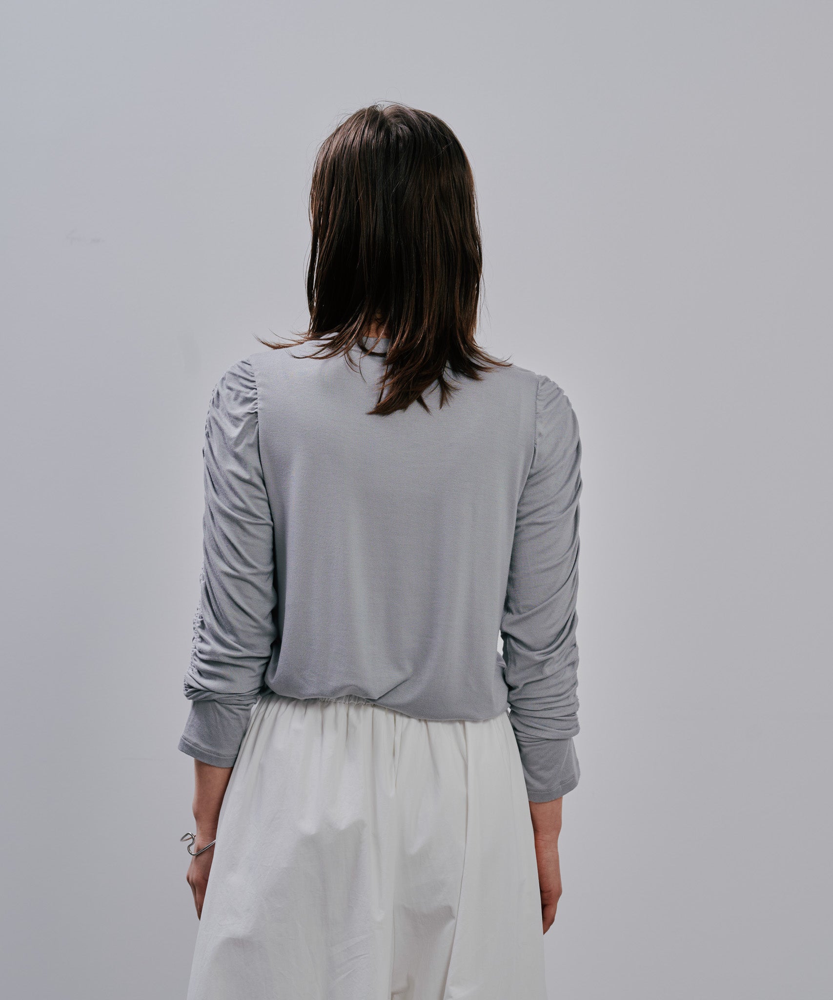 Gather Sleeve Tops [603343] grey