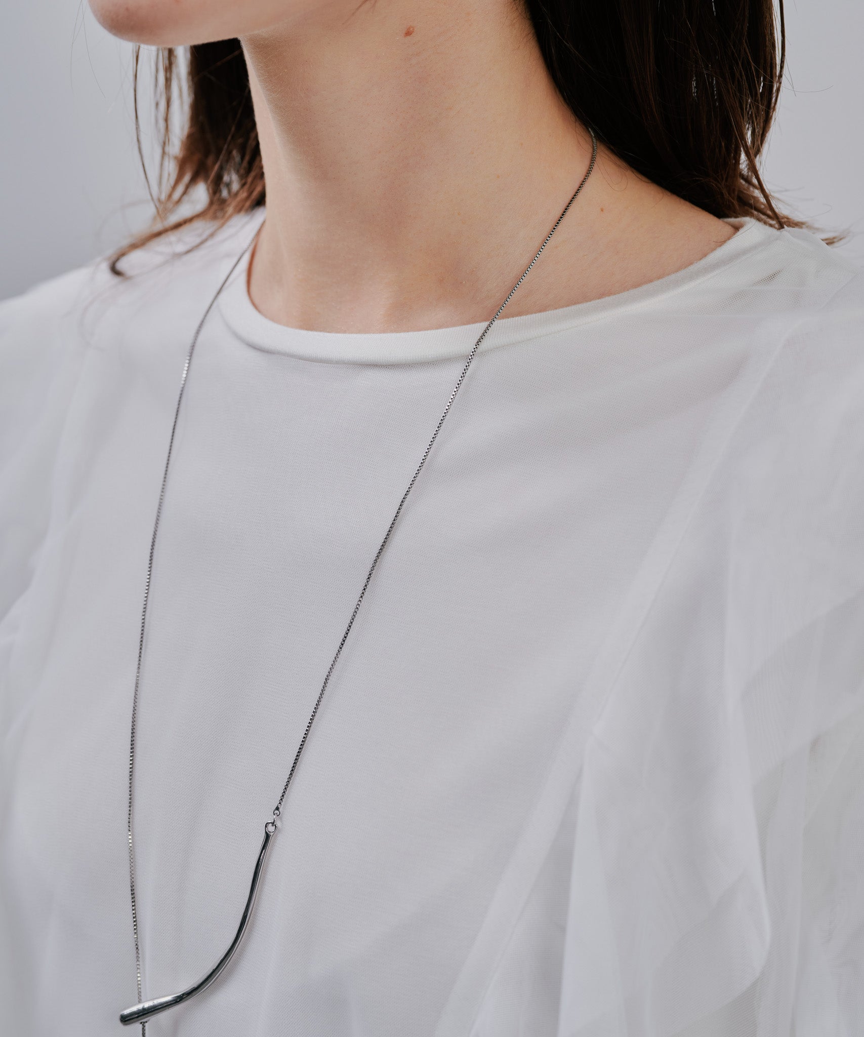 着心地を重視しながら、チュール部分のシアー感とボトムス次第で印象を変えることでコーディネートの幅が広がる1枚です。フェミニンな印象のトップスにエッジのあるボトムスを合わせるのがおすすめです。