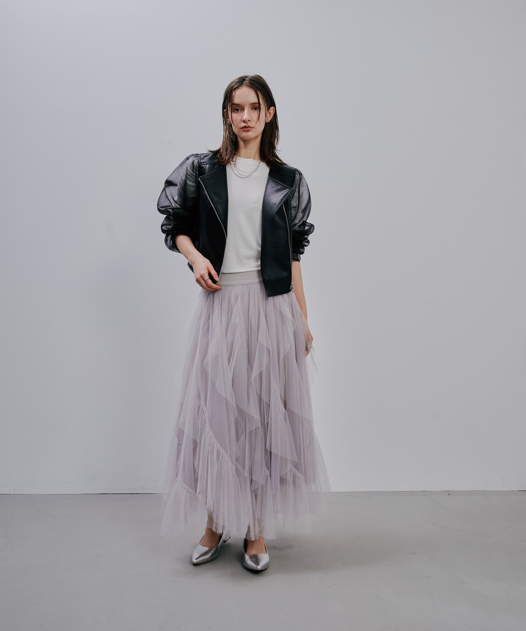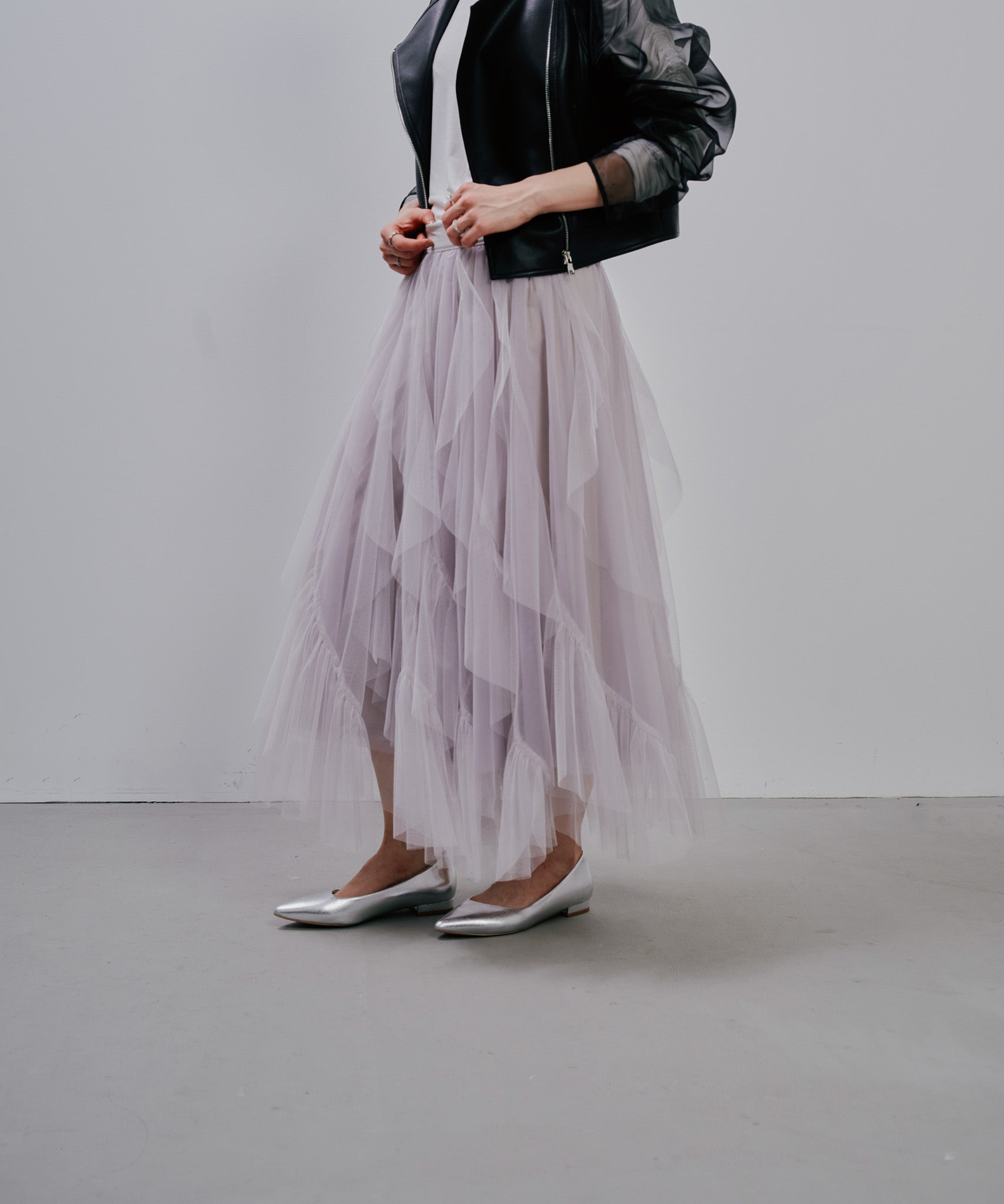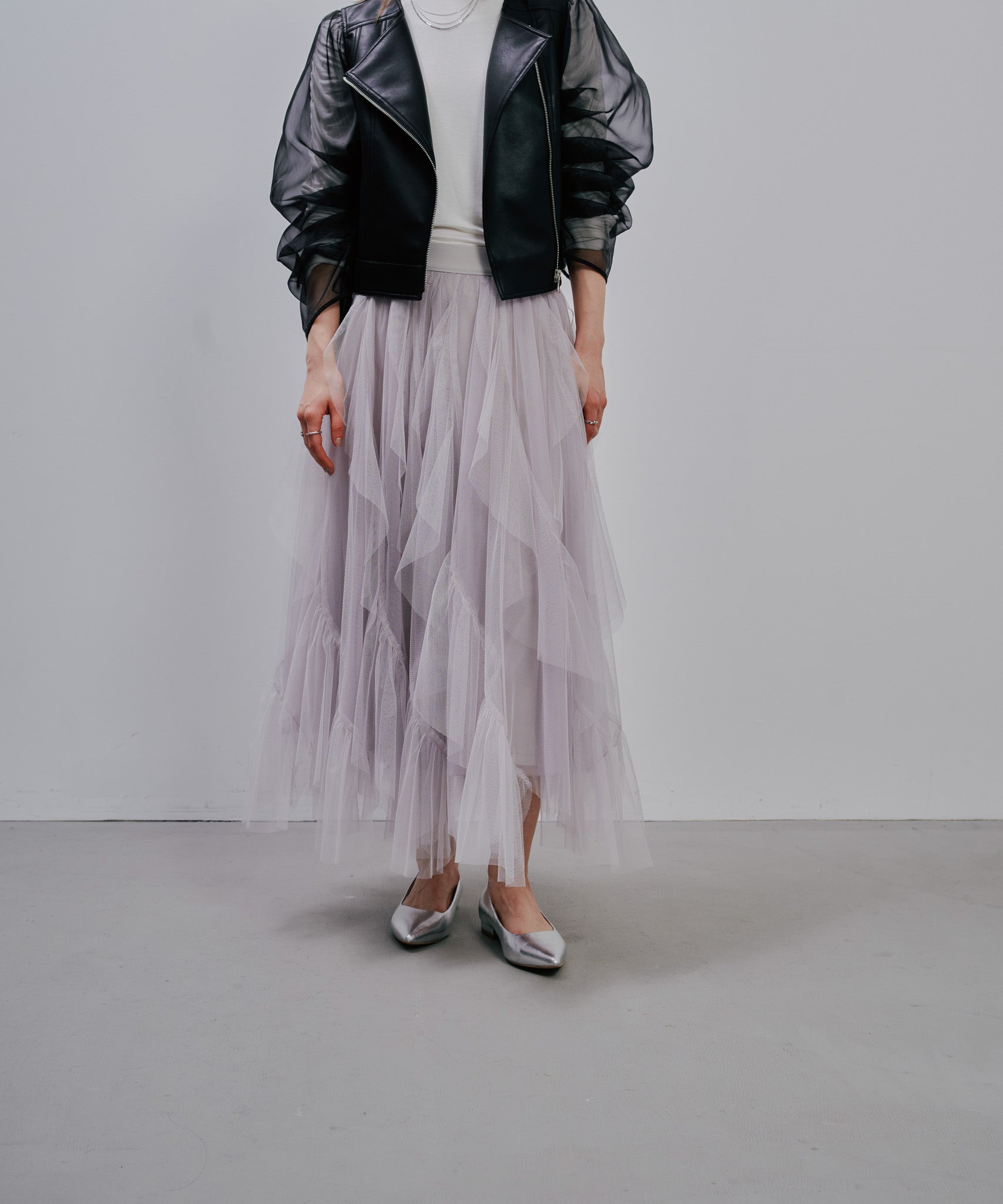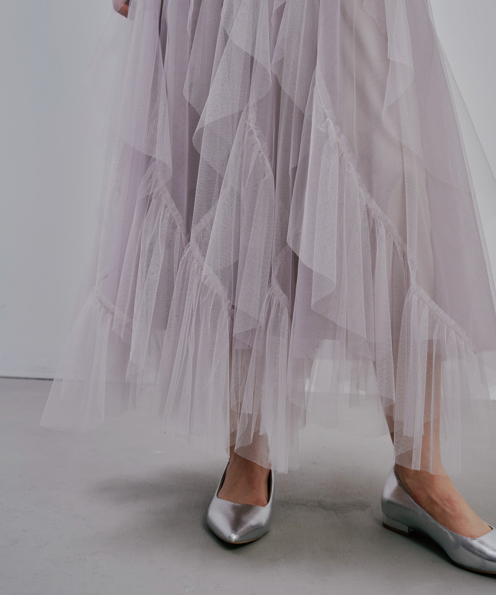 ティアードの位置やフリル幅、ギャザーの分量にこだわり、甘さを抑えつつも存在感のある理想的なシルエットに。