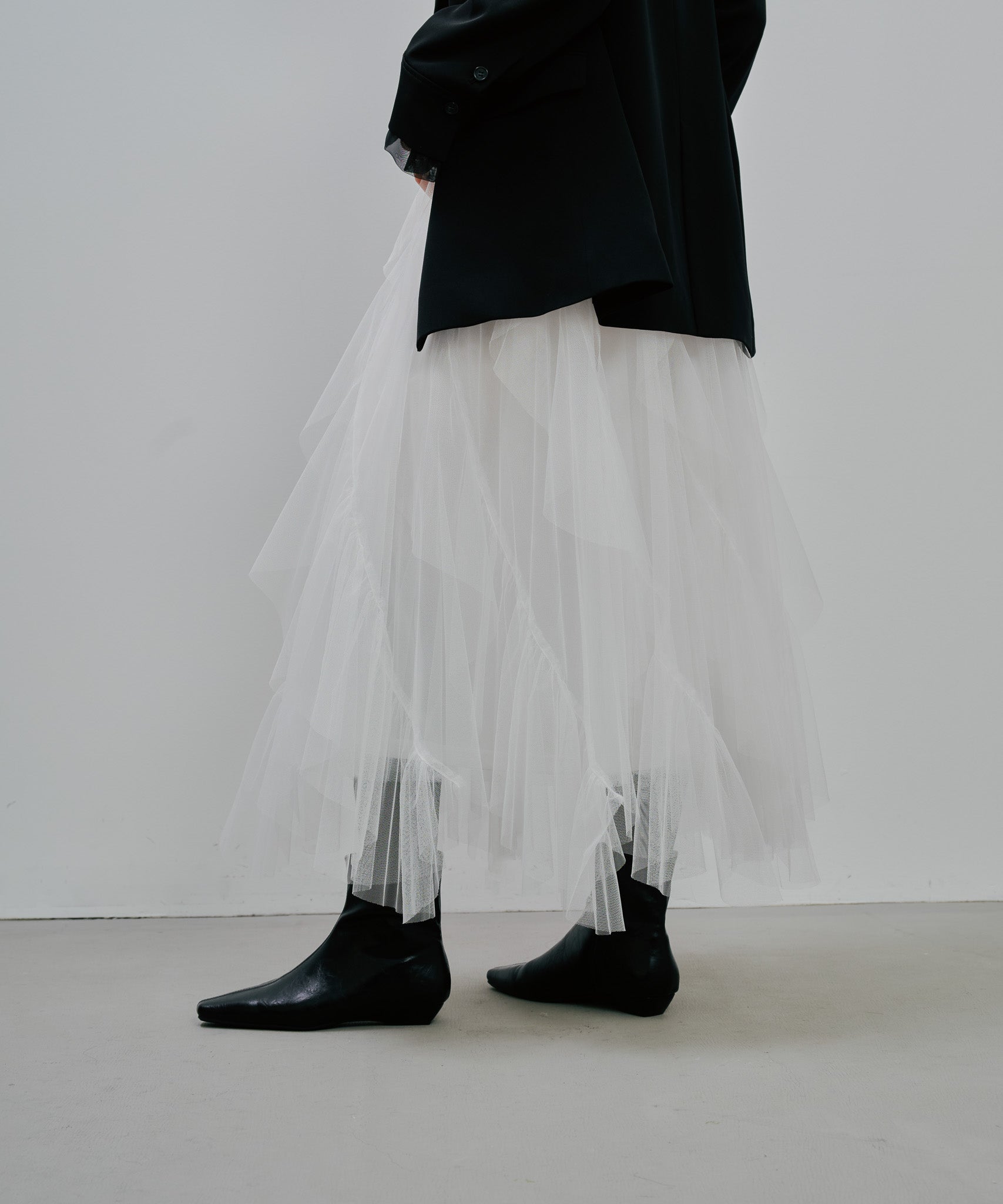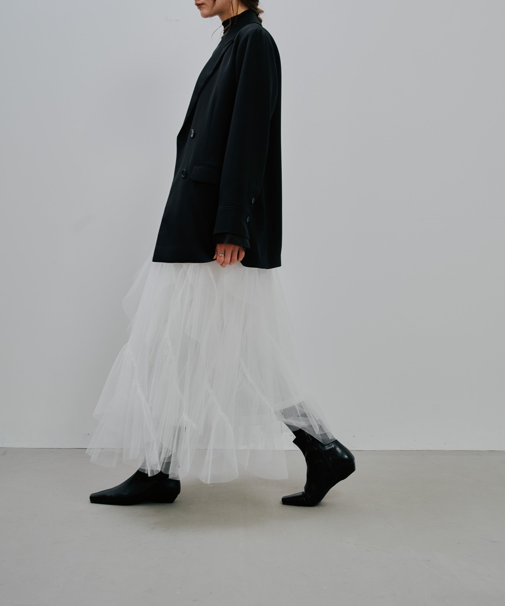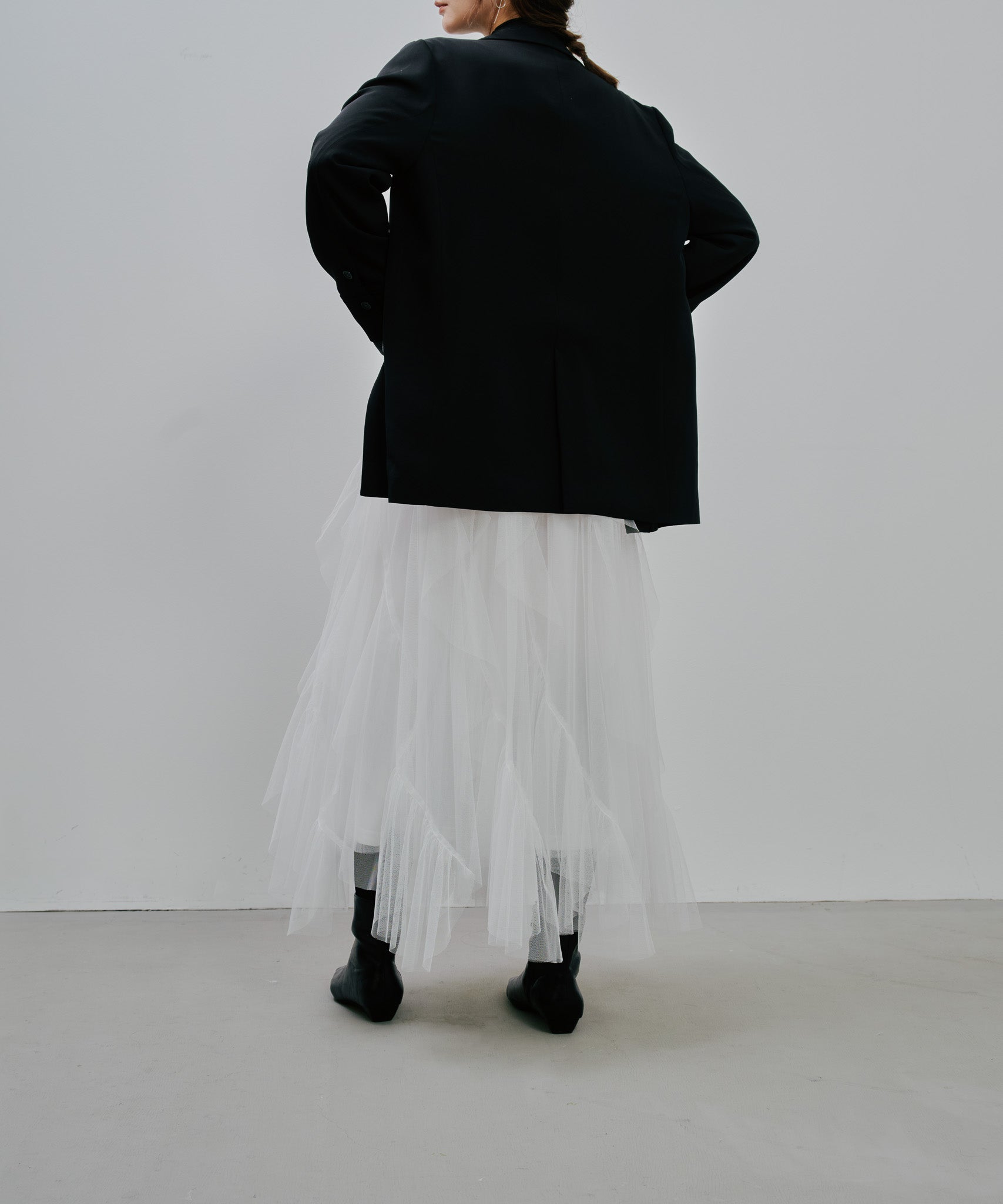 ティアードの位置やフリル幅、ギャザーの分量にこだわり、甘さを抑えつつも存在感のある理想的なシルエットに。