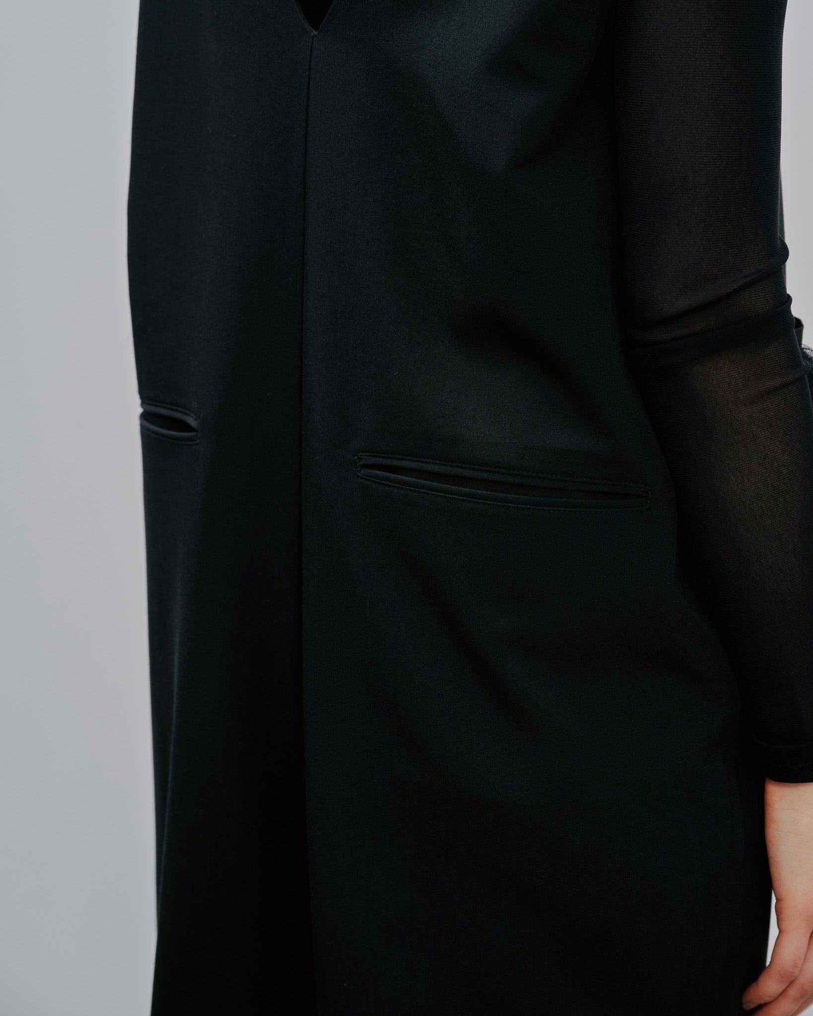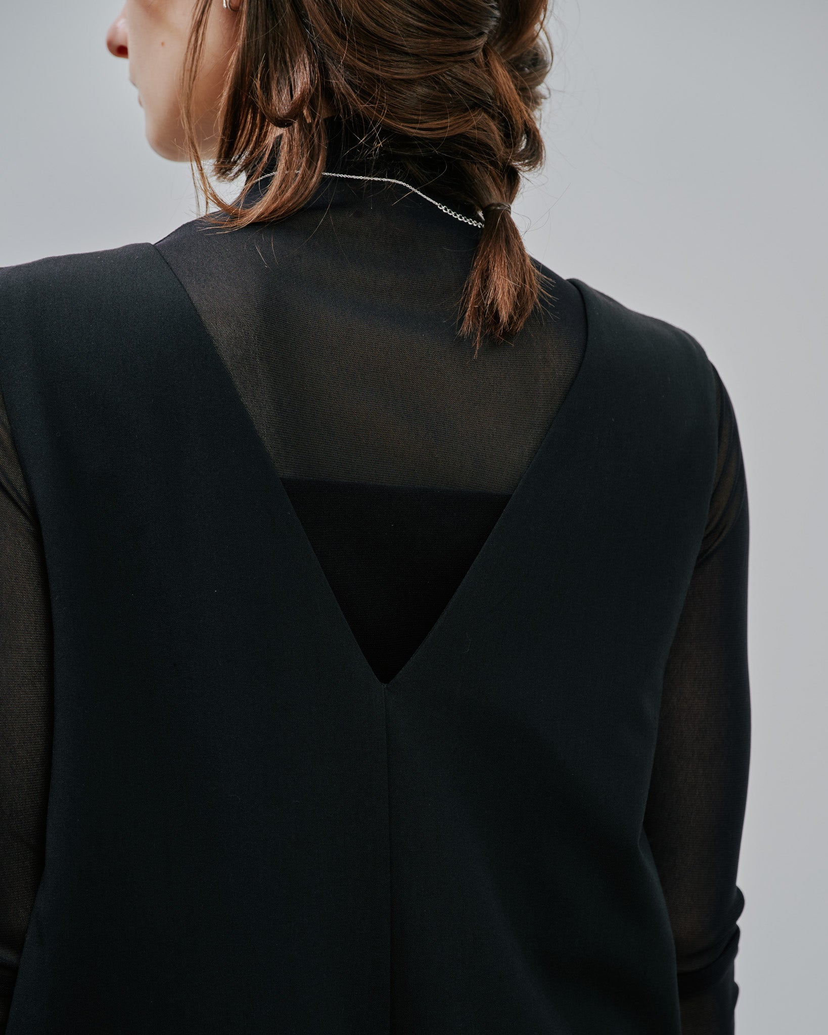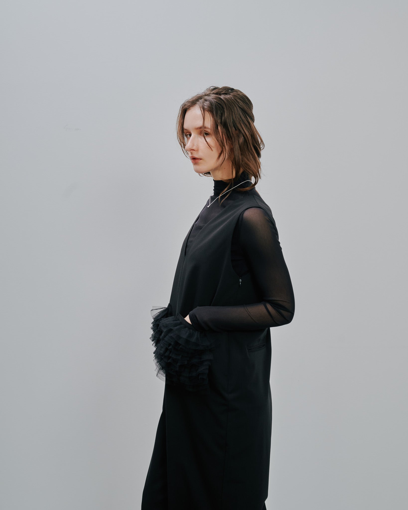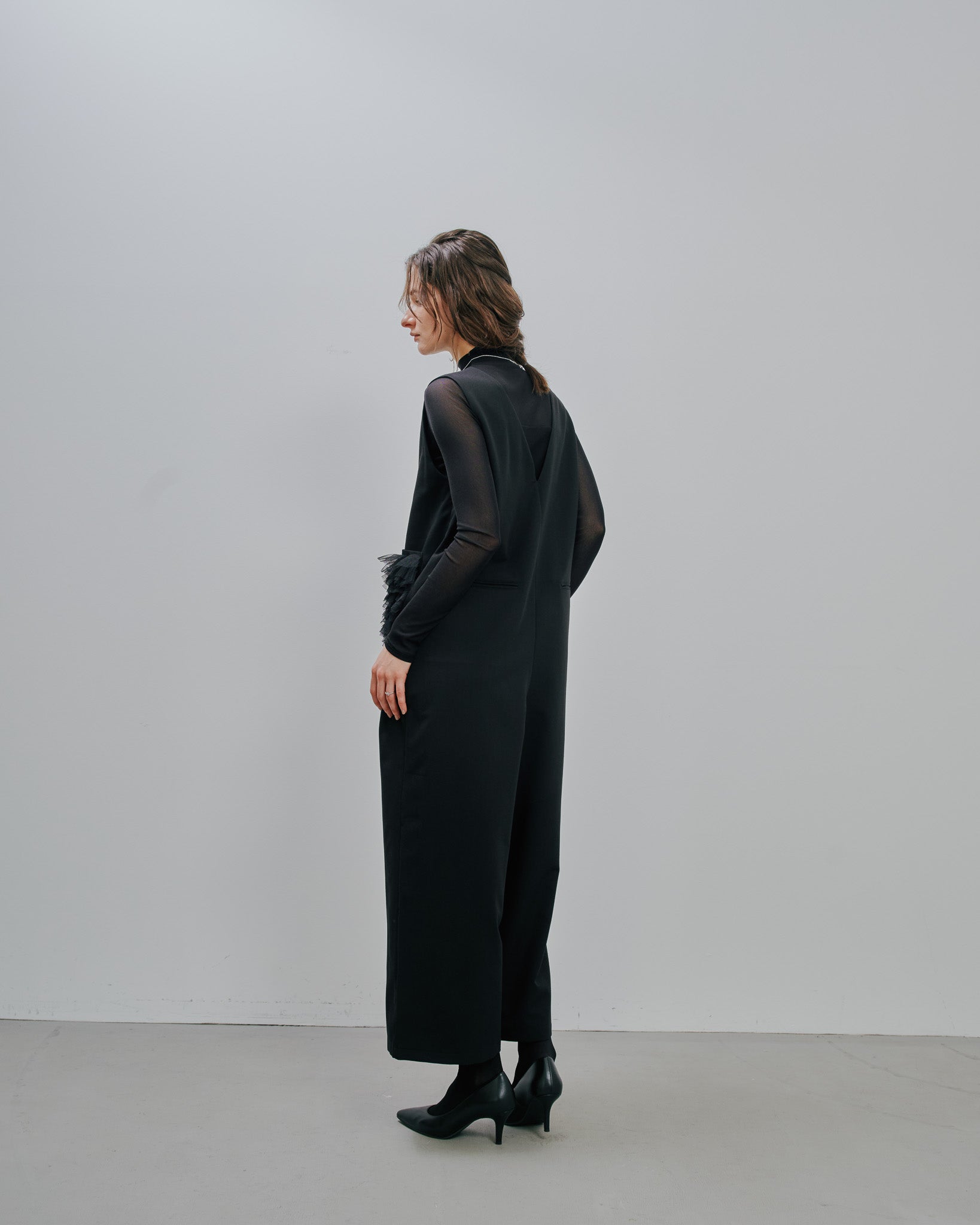 アウターを羽織る季節にももたつかず、スマートに着こなせるのが魅力です。シーンを選ばない着回し力と、ストレスフリーな着心地を兼ね備えた、ワードローブに欠かせない一着。