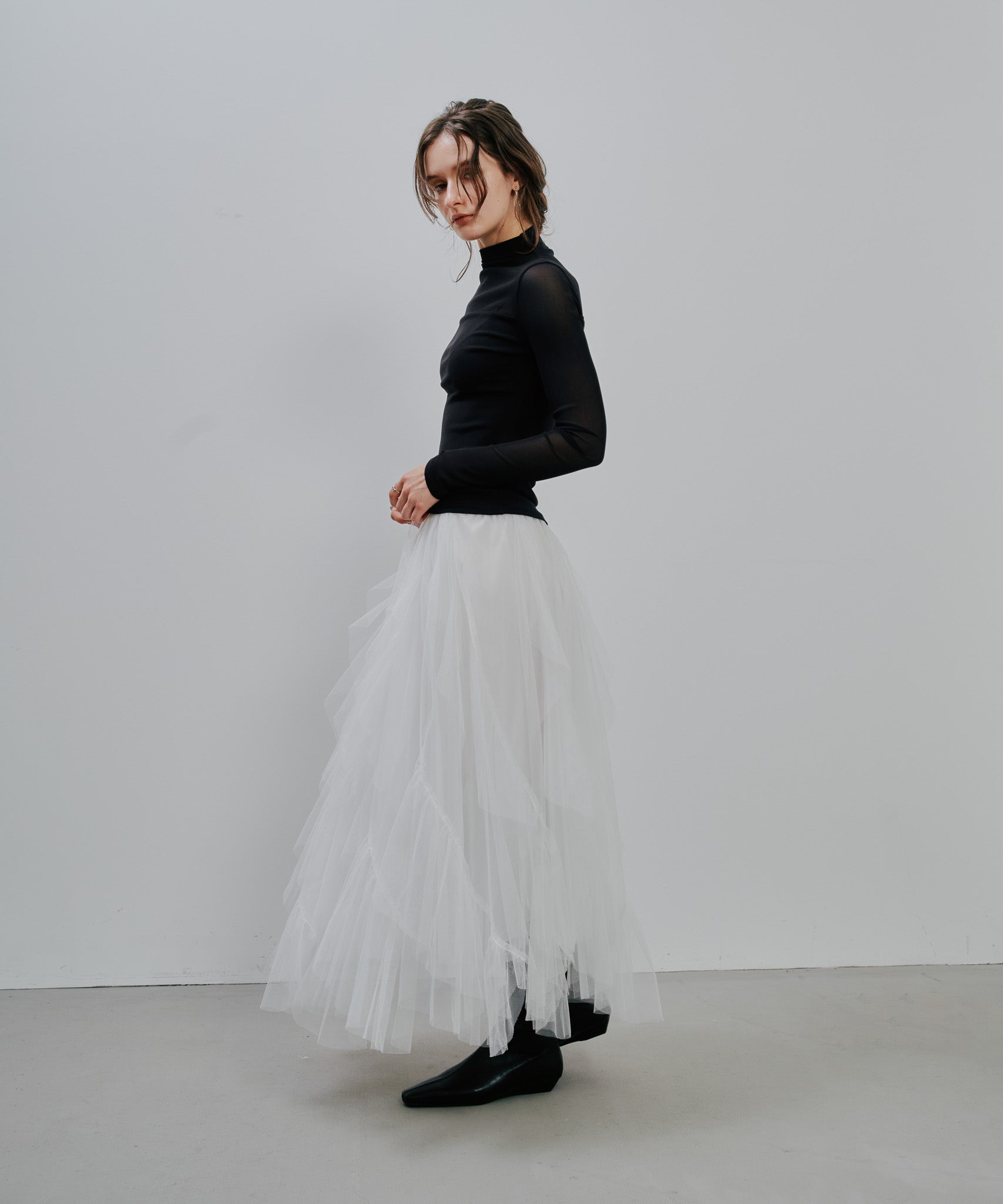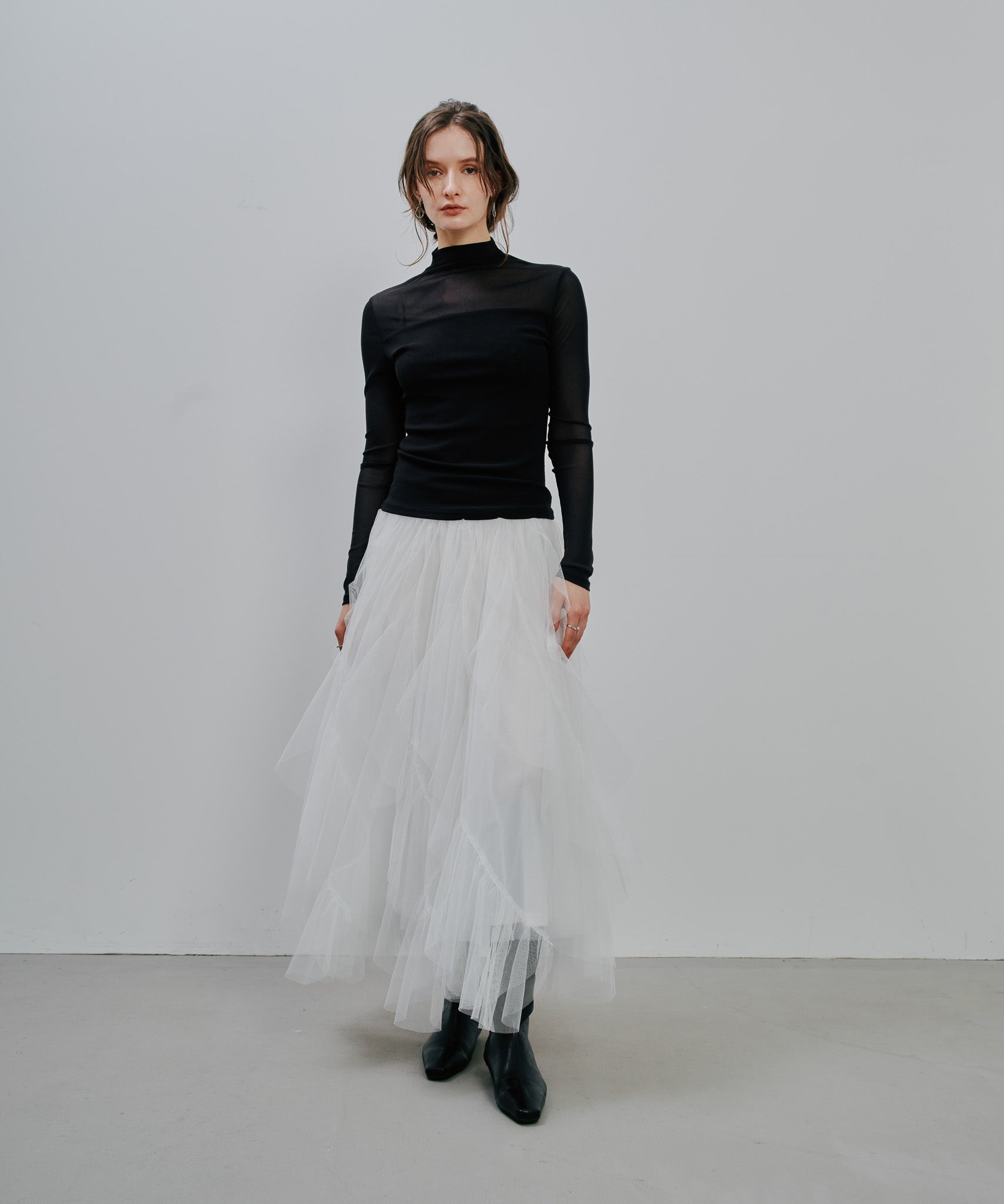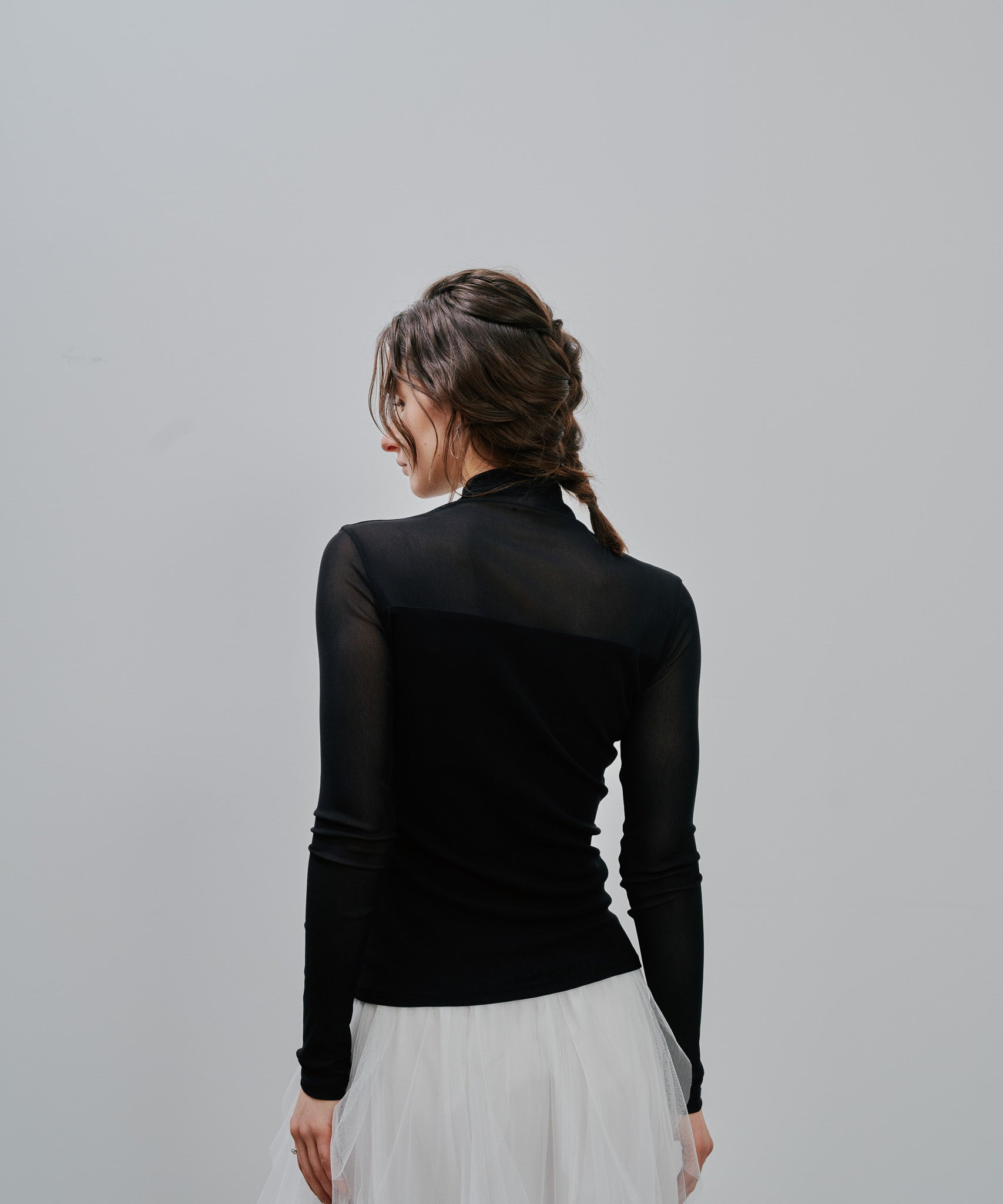 透け感のある素材を使用したレディースライクなトップス。ふんわりとエアリーなシアー素材が、女性らしさを引き立てます。
