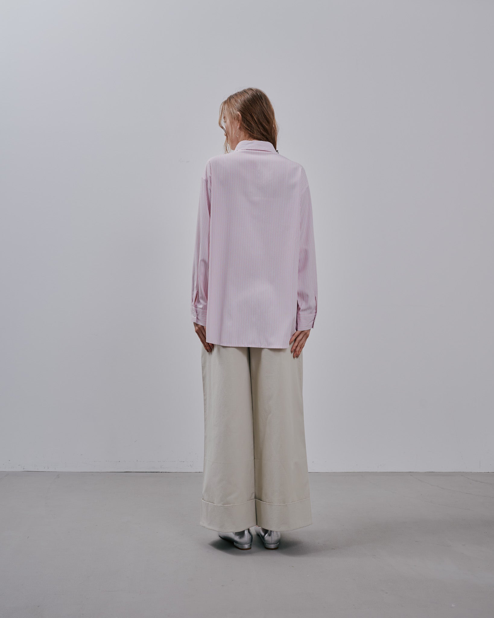 デニムパンツやシンプルなテーパードパンツと合わせれば、シャツのフェミニンなデザインが引き立ち、大人カジュアルスタイルが完成します。カットソーなどの羽織としても、襟元や袖口のフリル、ストライプ柄がアクセントに。